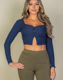 Elevate your casual wardrobe with this stylish ribbed split long sleeve top, designed with a flattering button-front detail for a touch of sophistication. Crafted from a soft and lightweight rib-knit fabric, this top offers high stretch for ultimate comfort and flexibility, making it perfect for everyday wear or layering.