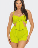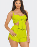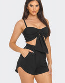 - Front Oversized Bow Twisted Tie Top And Shorts Set
