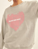 3. Design: The sweatshirt boasts a vintage-style heart graphic print featuring the uplifting "Follow Your Heart" text, adding a playful and inspiring element to your attire.